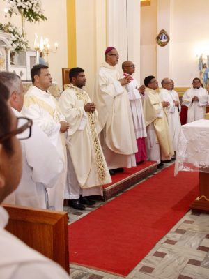 A Santa Missa foi presidida por Dom Valdemir Vicente, bispo diocesano, e concelebrada por Mons. Jodean dos Santos, vigário geral, Pe. José Erimatéia, vigário episcopal para a liturgia, além do clero diocesano e religiosos que atuam na Diocese, em expressiva manifestação de sinodalidade, sinal de uma Igreja que caminha junta, escuta, discerne e serve.